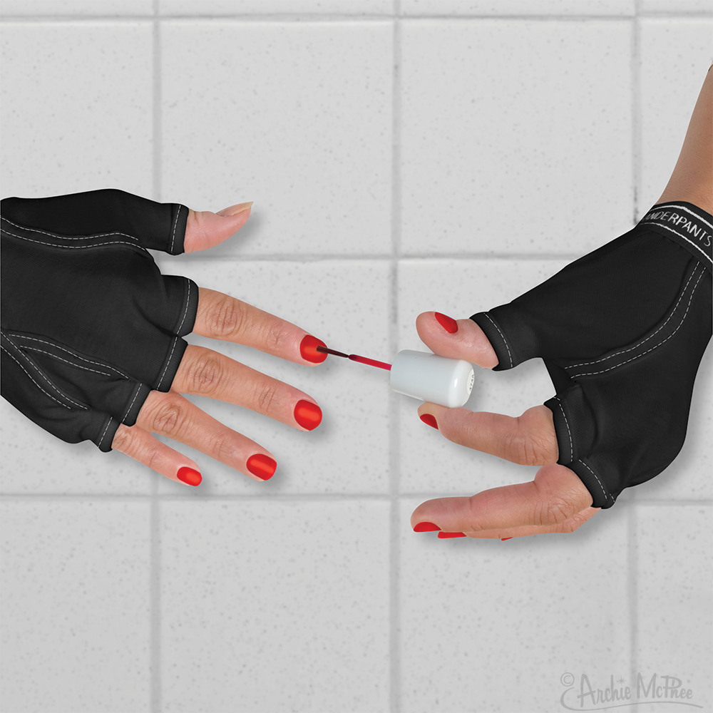 THE HANDERPANTS FOR A FANCY-PANTS As much as we love Handerpants, even we have to admit they aren’t the correct attire for every occasion. Well, now it has all changed! These Formal Handerpants are perfect for everything from an awards ceremony to a funeral. If a judge is about to sentence you or you’re graduating from law school, these are the Handerpants you should wear. These 95% cotton, 5% spandex, fingerless gloves have the look and feel of men’s formal briefs. Fit most adult hands. Six boxes in each illustrated display box.